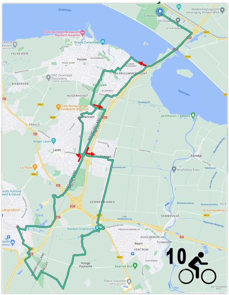 Verder via het park richting en door de Hoge Vuursche. Via een hoekje Hilversum, langs het Natuurreservaat “Anna’s Hoeve” en langs het bekende restaurant “De Bluk” naar Laren.