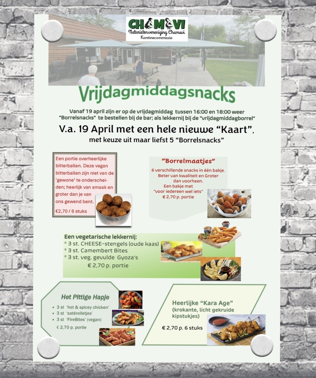 Voor de vrijdagmiddagborrel hebben we een hele nieuwe snackkaart.